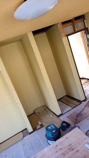 こんにちは!有限会社ベストワークです! 2階洋室のボードを貼りました クローゼットの中 ボードを貼る …