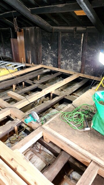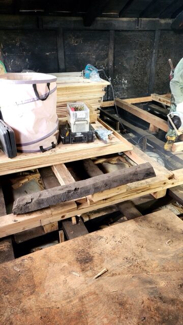 まずはレベルをだして、できるだけ床が高くならないように下地を作っていきました。