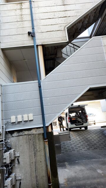 こんにちは! 有限会社ベストワークです! 2階の横側外壁工事しました! 錆びてた壁もきれいになって色 …